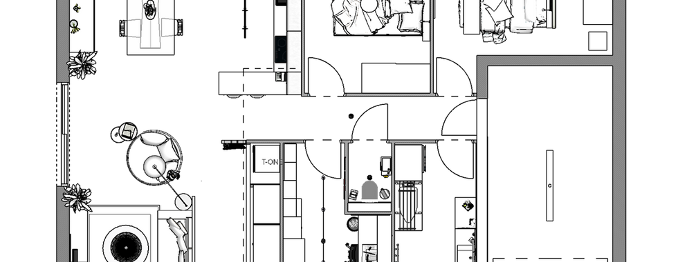 J'ai de ce fait réduis la superficie d'une des chambres, où je comptais installer mon bureau, pour agrandir la salle de bain. J'ai changé la configuration de la pièce de vie pour avoir un espace ouvert et mettre des claustras pour délimiter l'entrée au besoin. Et enfin, j'ai demandé une cloison de séparation dans une des chambres pour créer un dressing. Exercice difficile, car la chambre est étroite et sa configuration me laissait peu d'options pour une bonne circulation, sachant qu'il était hors de question pour moi d'avoir une armoire à l'entrée de la chambre.